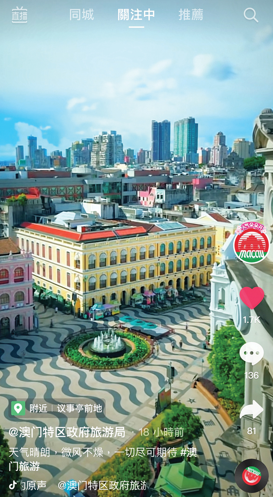 This image provided by the Macau Government Tourism Office (MGTO) shows one of its social media posts for its online promotional campaign.