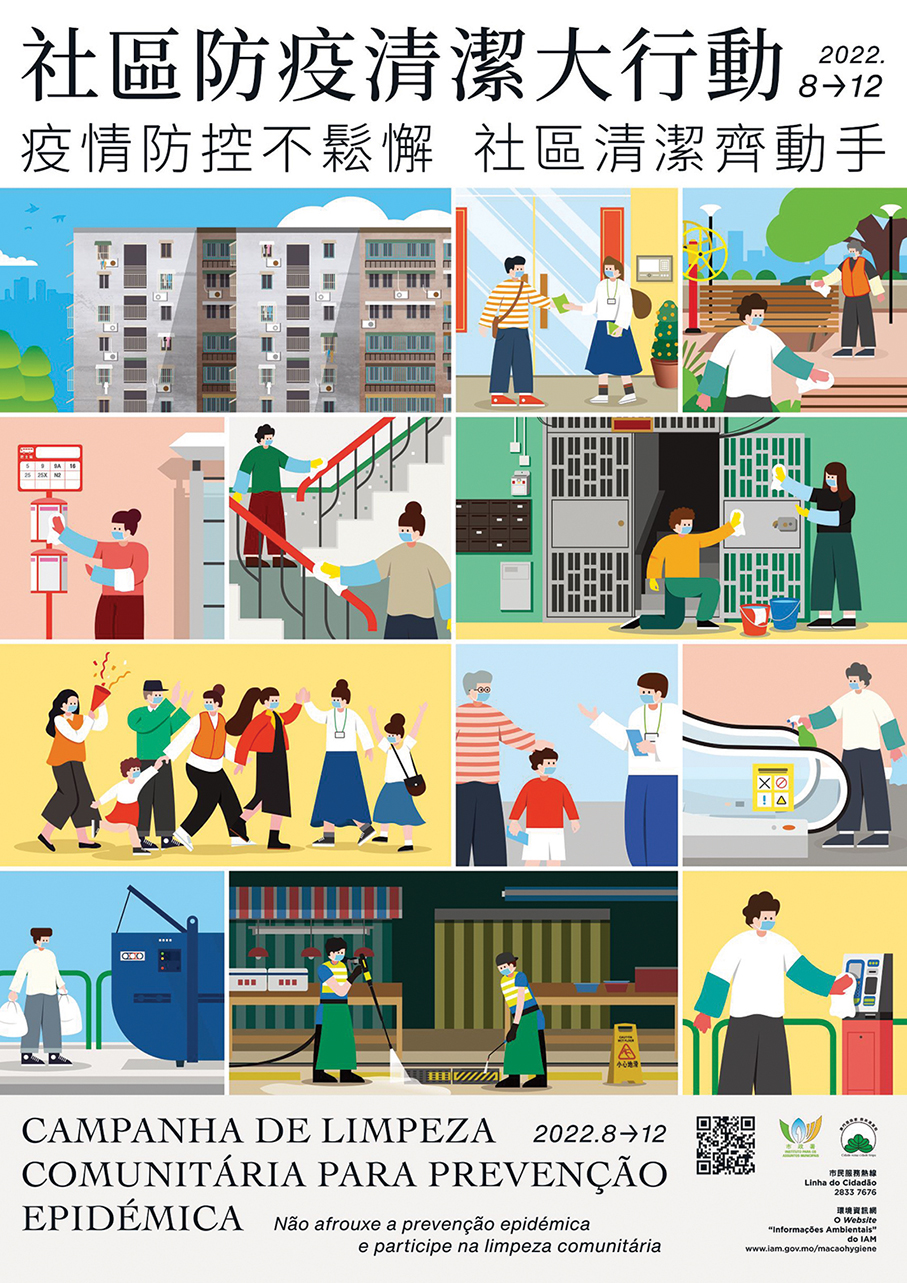 This poster provided by the Municipal Affairs Bureau (IAM) yesterday promotes its anti-pandemic community cleaning campaign.
