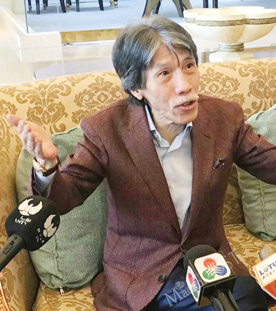 Macau Legend Development’s then co-chairman David Chow Kam Fai speaks to reporters at Macau Fisherman’s Wharf on the sidelines of the 2018 annual general meeting of his company yesterday on May 30, 2018. – Photo courtesy of TDM