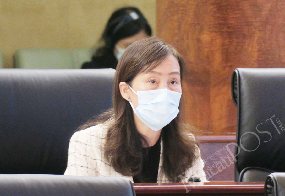 Secretary for Social Affairs and Culture Elise Ao Ieong U addresses Friday’s plenary session in the Legislative Assembly’s (AL) hemicycle. Photo courtesy of TDM
