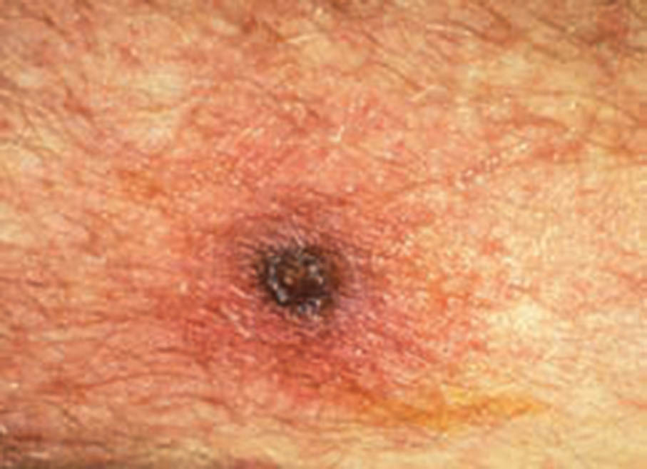 This undated file photo taken from the US Centres for Disease Control and Prevention’s (CDC) website yesterday shows the eschar caused by the bite of a chigger.