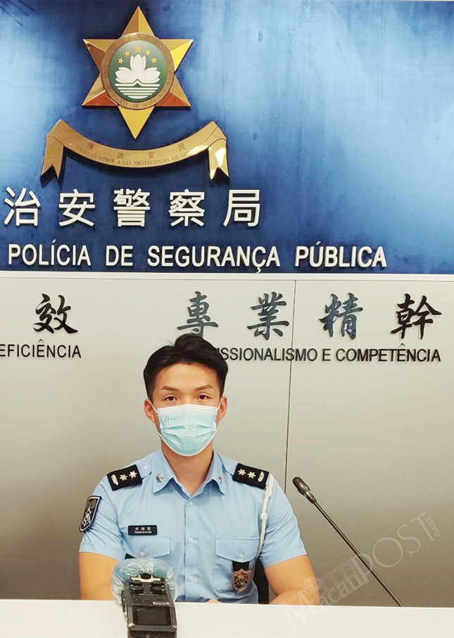 Public Security Police (PSP) spokesman Cheuk Kou Chi looks on during yesterday’s regular press conference. – Photo: William Chan