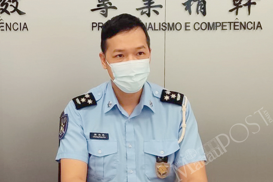 Public Security Police (PSP) spokesman Cheong Heon Fan looks on during yesterday’s regular press conference.