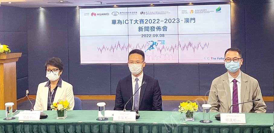 Huawei (Macau Branch), The Association for Promotion of Science and Technology of Macau, and the Macau Productivity and Technology Transfer Centre (CPTTM) are jointly holding the “Huawei ICT Competition 2022-2023 Macao SAR”, the preliminary contest of which will be held at the end of next month, according to a statement handed out during yesterday’s press conference about the contest at the Macau Chamber of Commerce Building in Zape.