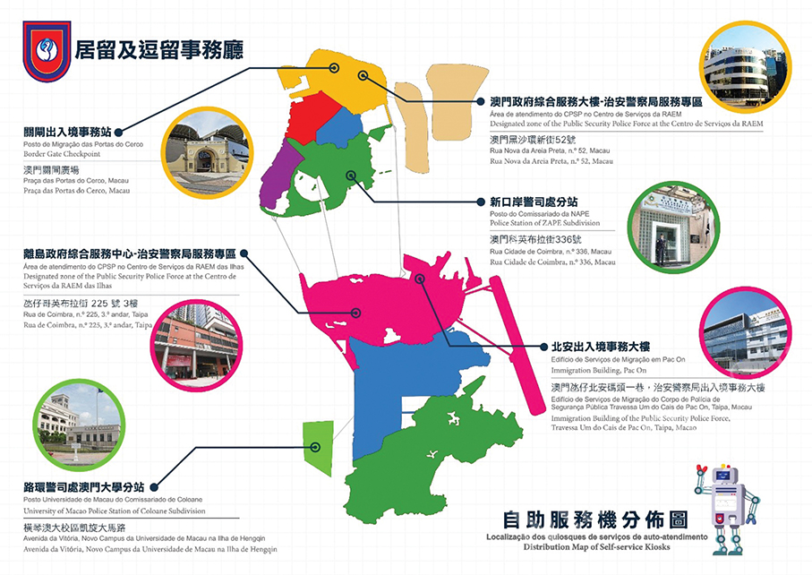 Further details can be found at https://www.fsm.gov.mo/psp/eng/main.html, the CPSPMacaocn WeChat account, by calling 28725488 or visiting the PSP service points at the Immigration Department Building in Pac On and the Macau Government Services Centre in the peninsula and Taipa during their office hours.