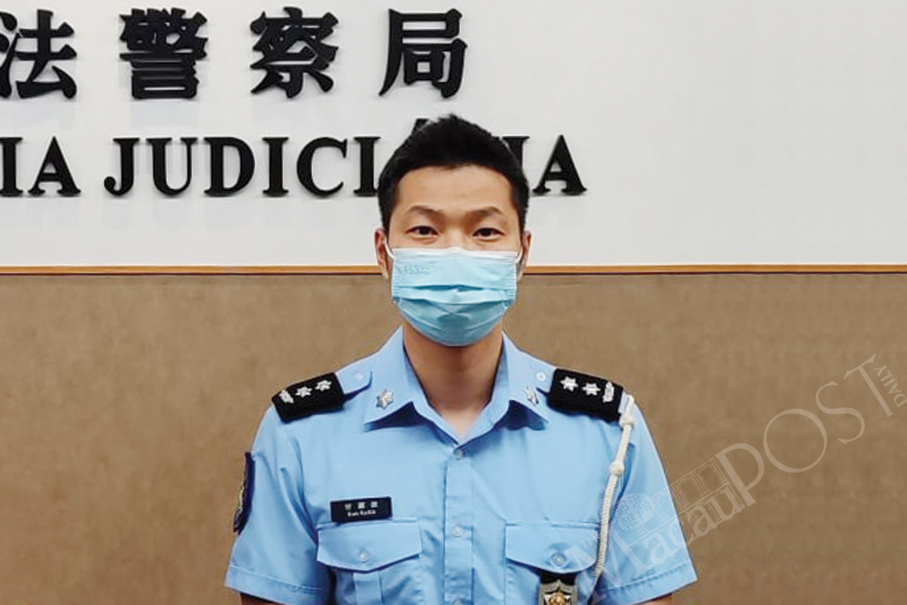 Public Security Police (PSP) spokesman Kam Ka Kit looks on during yesterday’s regular press conference.
