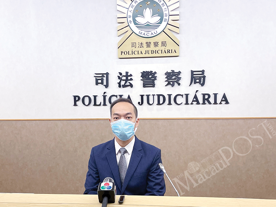 Judiciary Police (PJ) spokesman Lou Chan Fai addresses yesterday’s special press conference at the PJ headquarters in Nape. – Photo: Yuki Lei