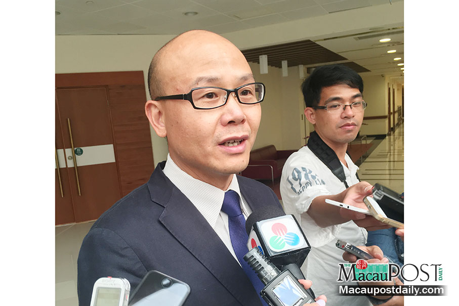 Environmental Protection Bureau (DSPA) Vice Director Ip Kuong Lam talks to reporters after a regular meeting of the Northern Districts Social Services Consultative Committee at the Government Service Centre in Areia Preta yesterday. Photo: Debby Seng