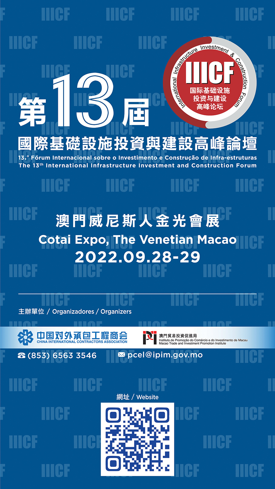 The 13th International Infrastructure Investment and Construction Forum (IIICF) themed “Co-building Infrastructure of High Standard, Sustainability and Benefit to People’s Livelihoods” is slated to be held from September 28- 29 at The Venetian Macao Cotai Expo, the Macau Trade and Investment Promotion Institute (IPIM) said in a statement yesterday.