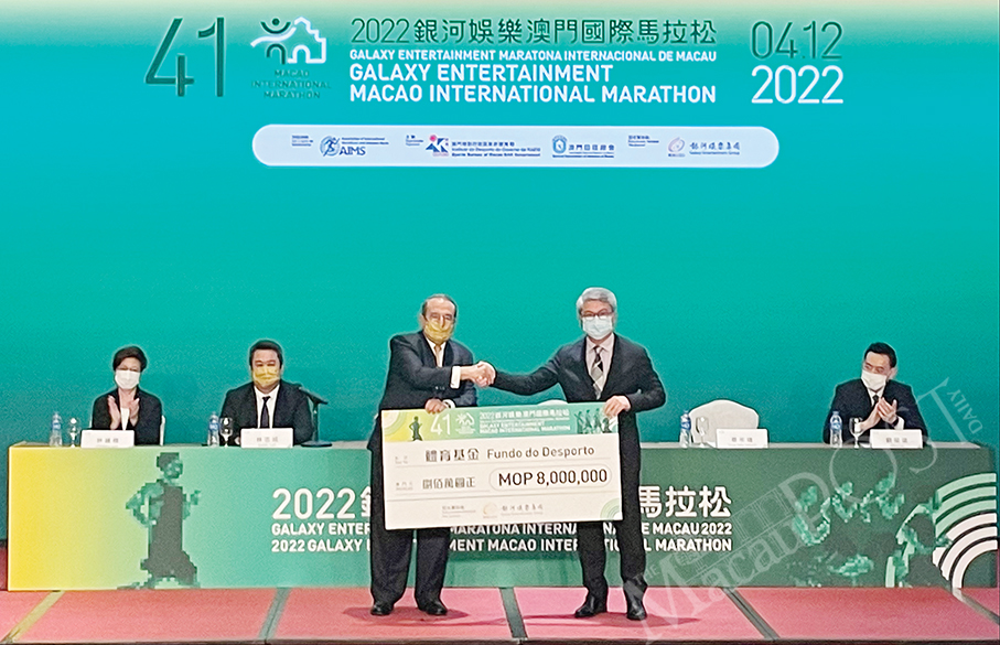 The 2022 Galaxy Entertainment Macau International Marathon will be held on Sunday December 4, Sports Bureau (ID) President Pun Weng Kun announced during a press conference at Galaxy Macau’s Banyan Tree Hotel in Cotai yesterday, adding that an all-online registration system will be open for sign-up on October 8 for the marathon and half-marathon categories, and on October 9 for the mini-marathon.