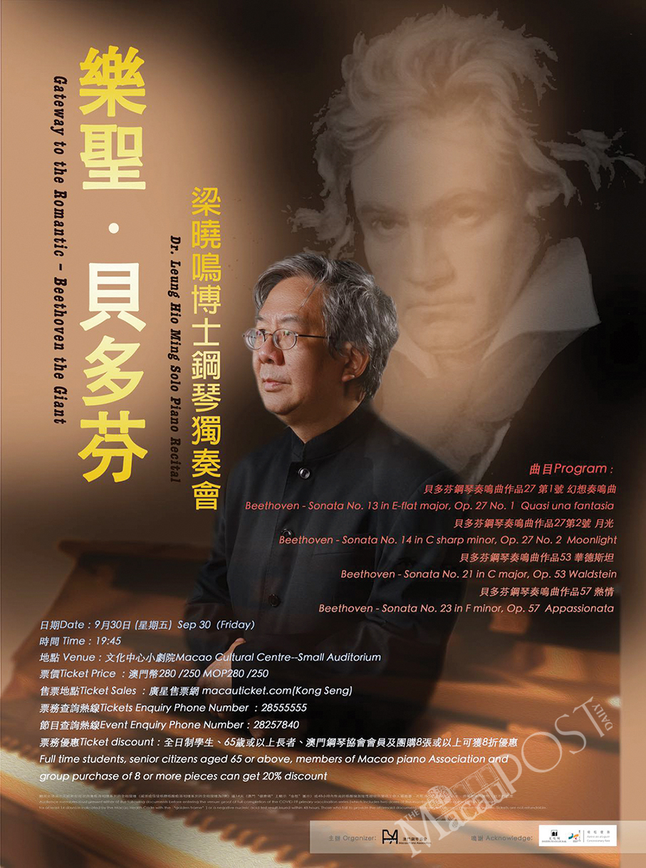 In an exclusive interview with The Macau Post Daily, Leung Hio Ming, associate professor at the Macau Polytechnic University (MPU), shared his experience of cultural education and prospects – and the excitement of playing his favourite composer’s sonatas this Friday at the Macau Cultural Centre (CCM) in Nape.