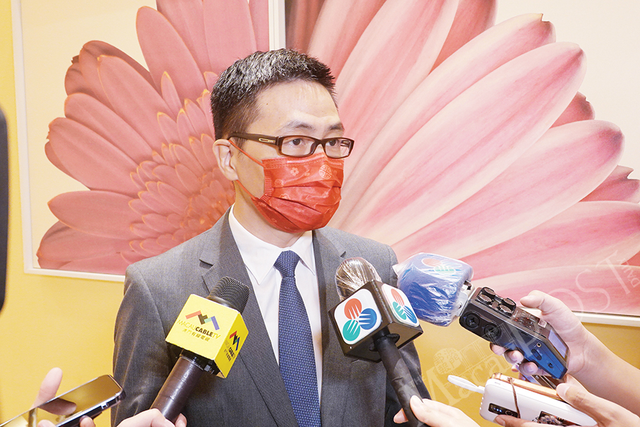Macau Government Tourism Office (MGTO) Deputy Director Cheng Wai Tong talks to reporters on the sidelines of the opening ceremony of “Macanese Cuisine Culinary Heritage Masterclasses” yesterday at Wynn Macau’s banquet hall in Nape.