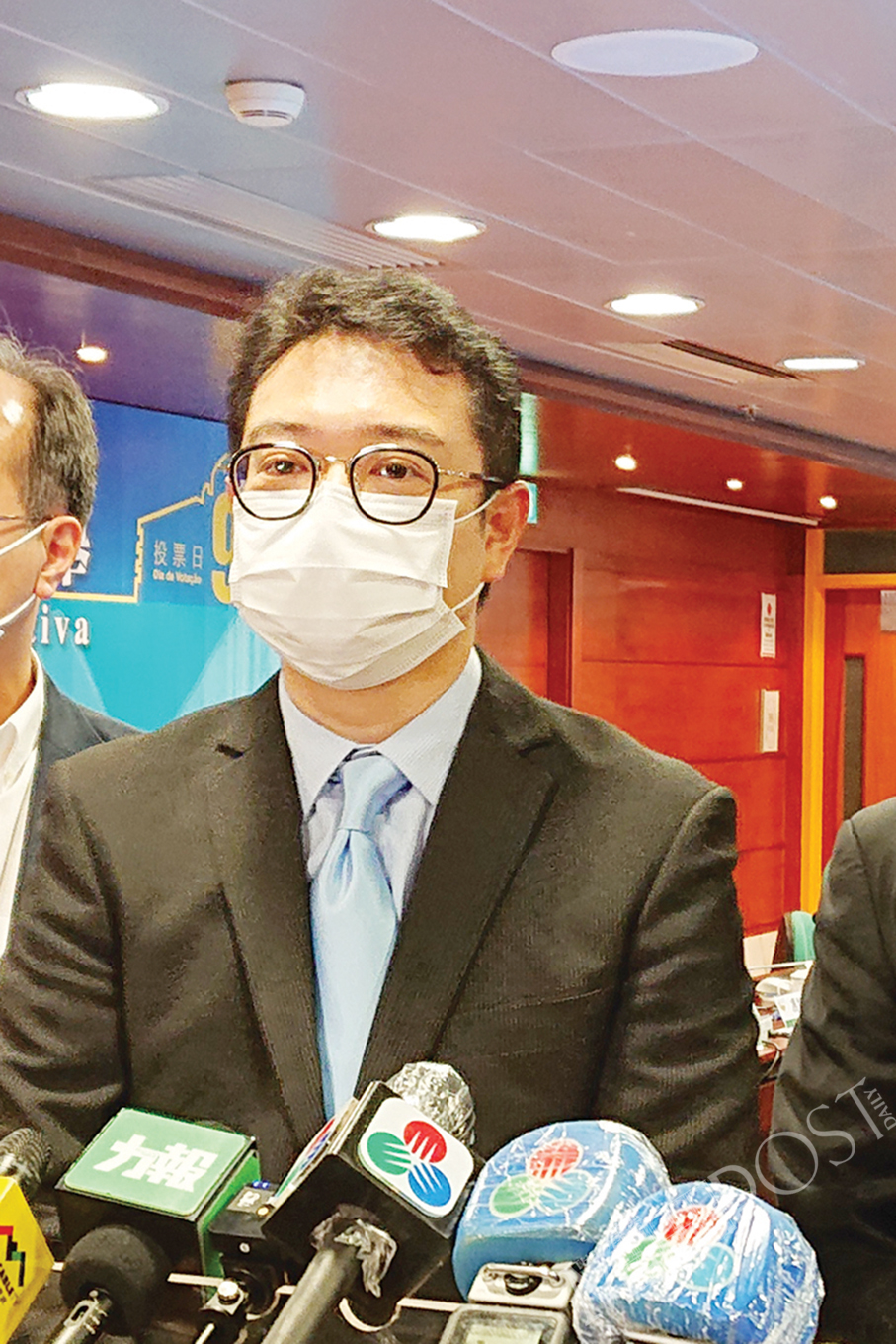 Tong Hio Fong, who headed the Legislative Assembly Electoral Affairs Commission (CAEAL) that oversaw the legislative direct and indirect elections last year, talks to reporters in May last year after a closed-door meeting of the commission at the Public Administration Building in Rua do Campo. – Photo: Tony Wong
