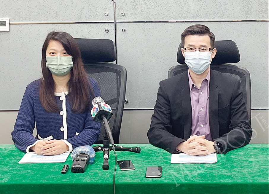 Central District Community Service Consultative Council deputy convener Lei Chong In (right) and member Mok Chio Kuan pose during yesterday’s press briefing after the government-appointed council’s closed-door meeting with Fire Services Bureau (CB) officers at the Patane Activity Centre. – Photo: Yuki Lei