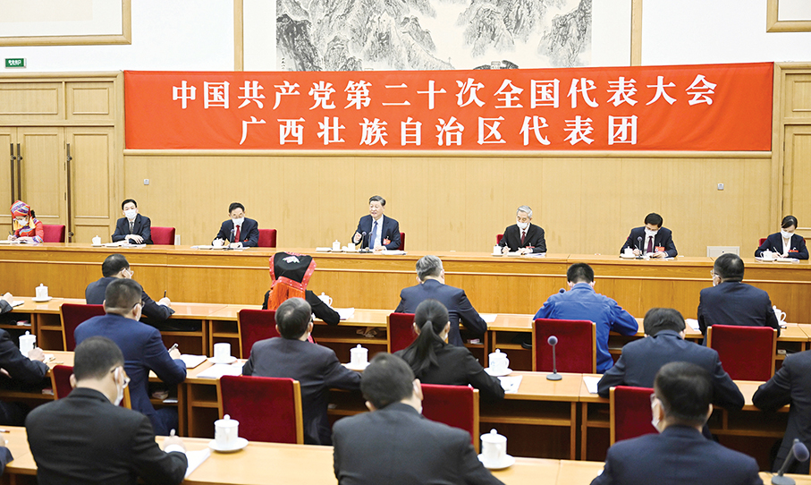 Xi made the remarks when he joined a group discussion with delegates from the Guangxi Zhuang Autonomous Region who are attending the 20th CPC National Congress.