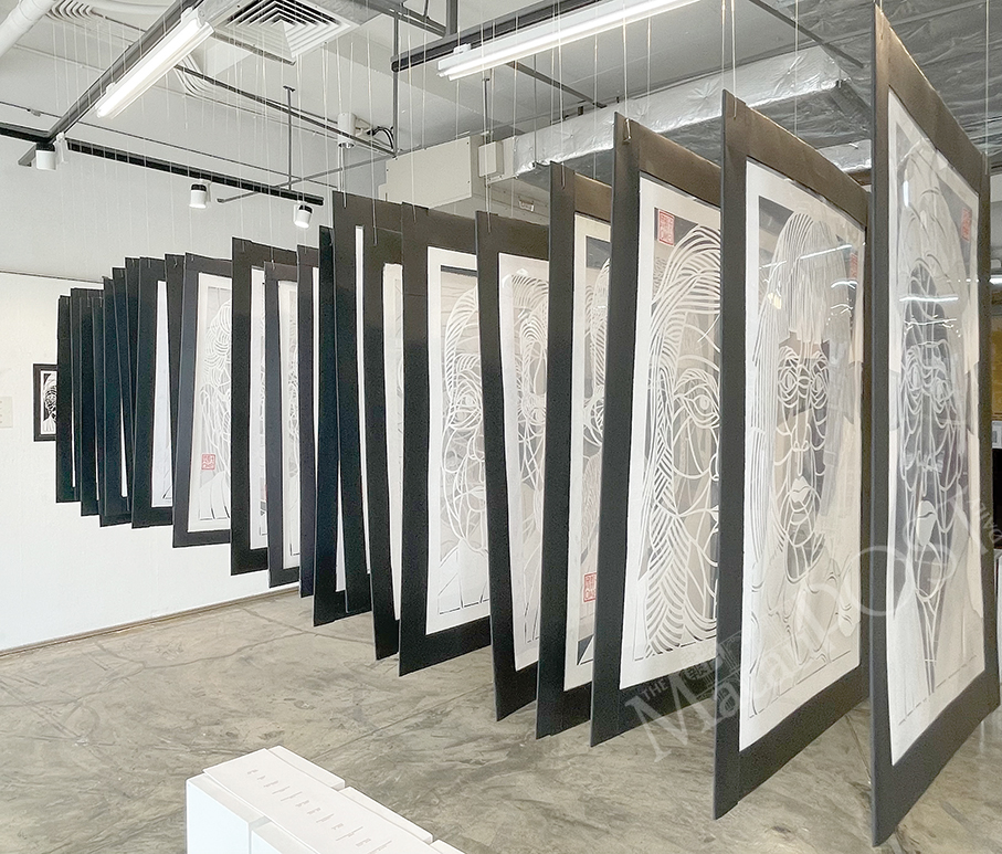 Leong Fei In said in the statement that there are three key elements in “Dynamic Silence” – mapping the surface of the paper by marking grids, destroying the paper while creating it by cutting, and altering a sheet from a surface into a space object by making a fold. She also said that the creation of the lattice series was inspired by people’s psychological and emotional restlessness, aiming to achieve the effect of recovery and healing through repetitive labour.