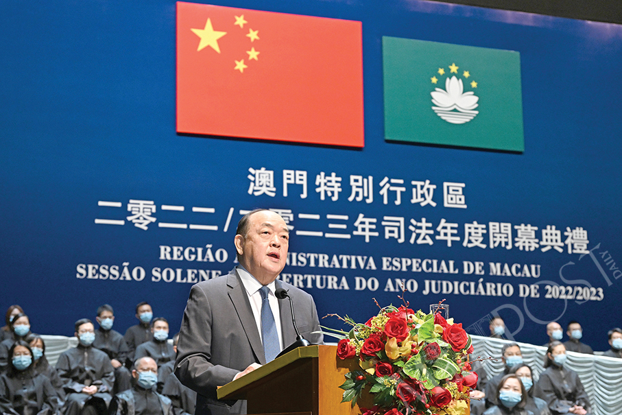 Ho made the remarks in his speech during a ceremony at the Macau Cultural Centre (CCM) which marked the formal start of the 2022-23 Judicial Year.
