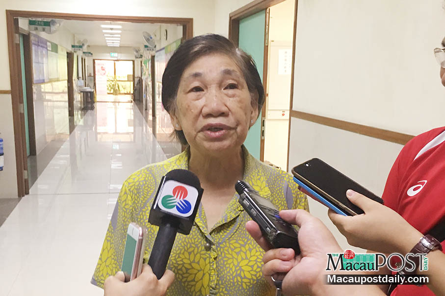 Wong Chio Wa, who takes care of two elderly family members, talks to reporters on the sidelines of a press conference held at the community service centre of the Macau General Union of Neighbourhood Associations (commonly known as Kai Fong) in Toi San district. –Photo: Debby Seng