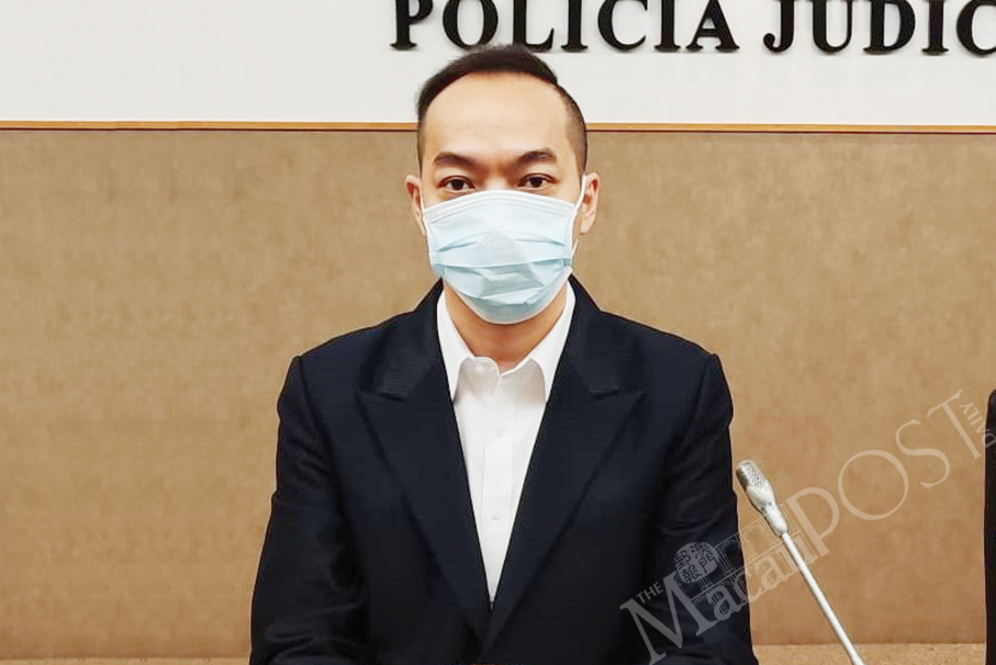Judiciary Police (PJ) spokesman Lou Chan Fai looks on during yesterday’s press conference at the PJ headquarters. – Photo: William Chan