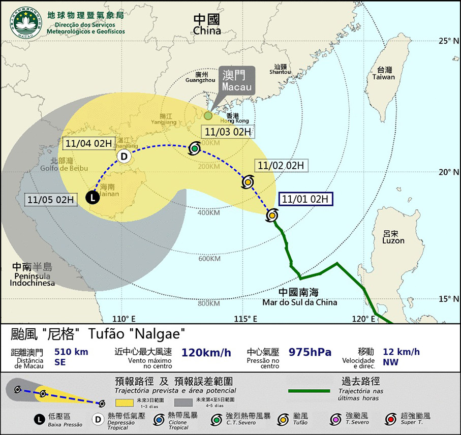The Meteorological and Geophysical Bureau (SMG) said in a statement that it hoisted the Tropical Cyclone Signal No.3 at 3 a.m. when Typhoon “Nalgae” was located about 500 kilometres southeast of Macau.