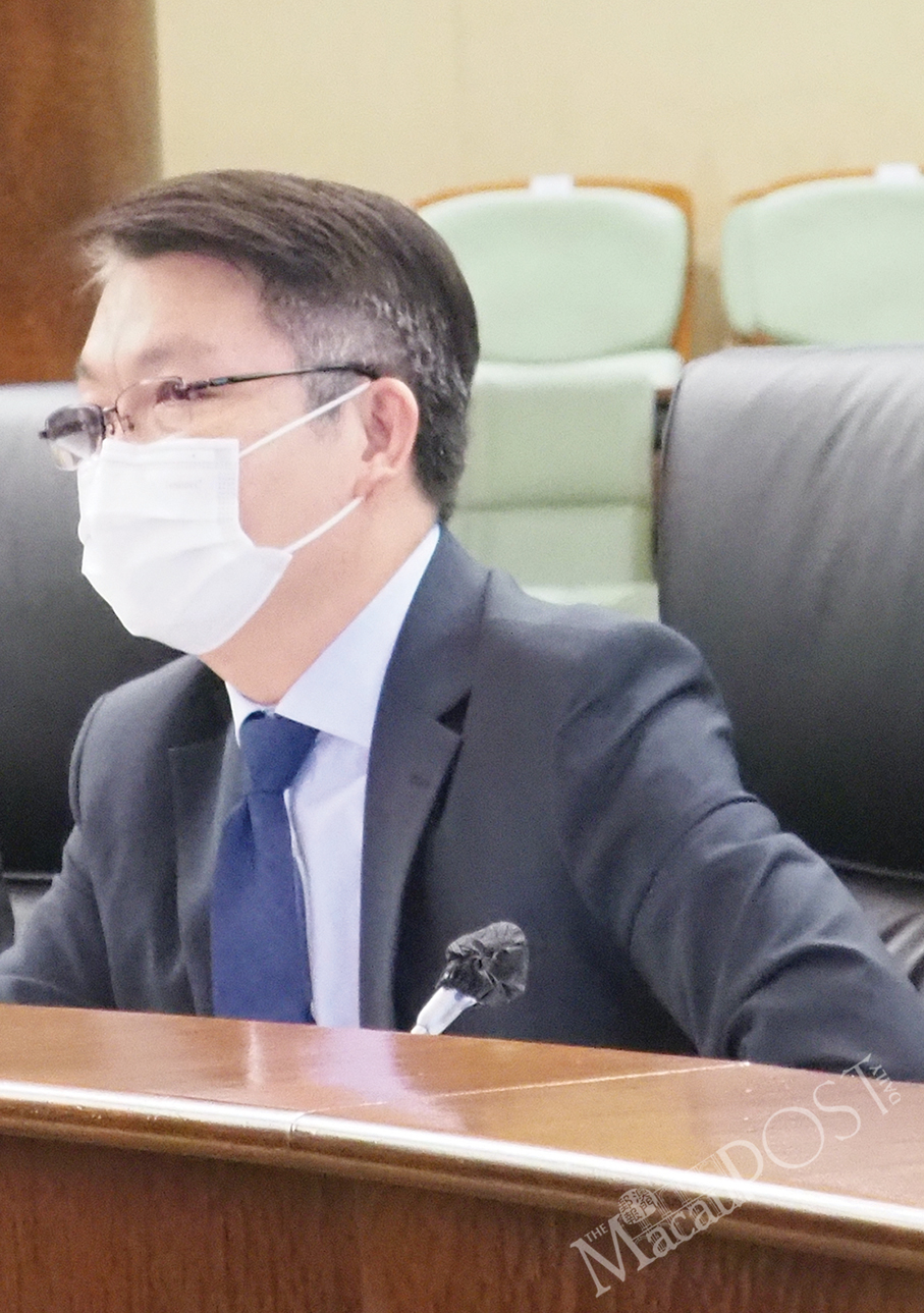 Secretary for Administration and Justice André Cheong Weng Chon speaks during yesterday’s plenary session in the legislature’s hemicycle.