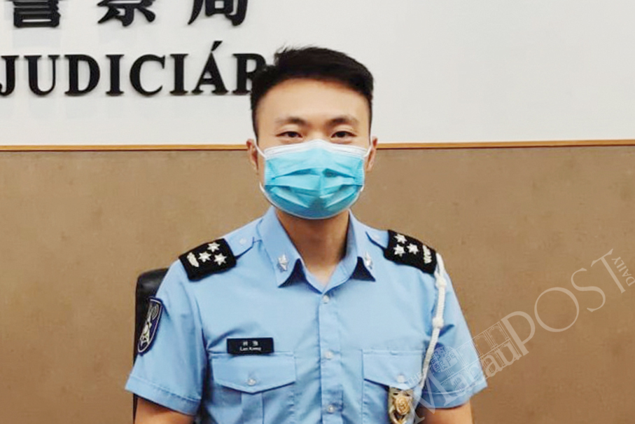 Public Security Police (PSP) spokesman Lam Keong looks on during yesterday’s regular press conference. – Photo: William Chan