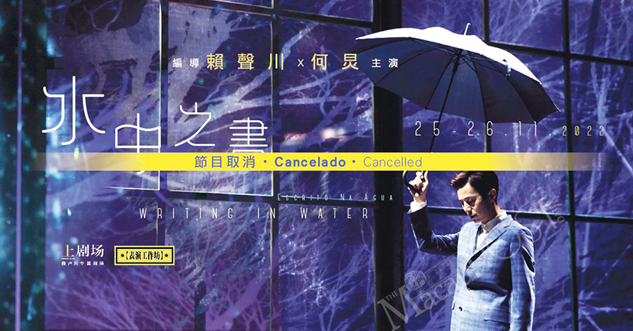 The Cultural Affairs Bureau (IC) announced in a statement yesterday the cancellation of Stan Lai’s play entitled “Writing in Water” due to the mainland’s ongoing COVID-19 pandemic prevention measures which do not allow the performance group to travel to Macau.