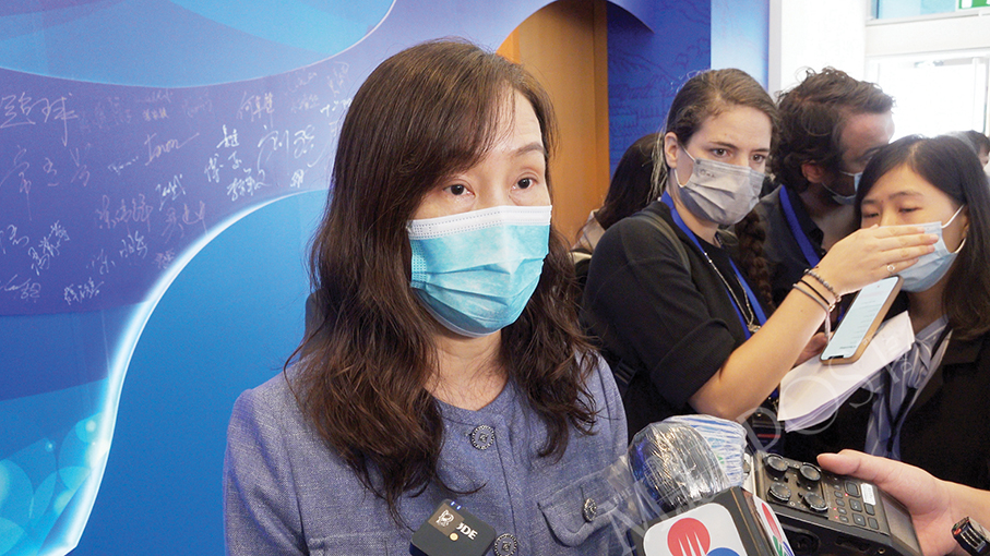Secretary for Social Affairs and Culture Elsie Ao Ieong U talks to reporters at the Macau Science Centre (MSC) yesterday. – Photo: GCS