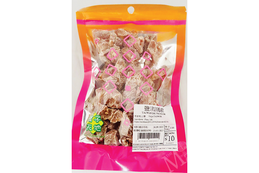 The Municipal Affairs Bureau (IAM) urged the public yesterday to stop eating the pre-packed “Taiwan Salted Plum” product supplied by Fruit Wonderland as it was found to contain excessive amounts of neotame, which is a kind of sweetening agent.