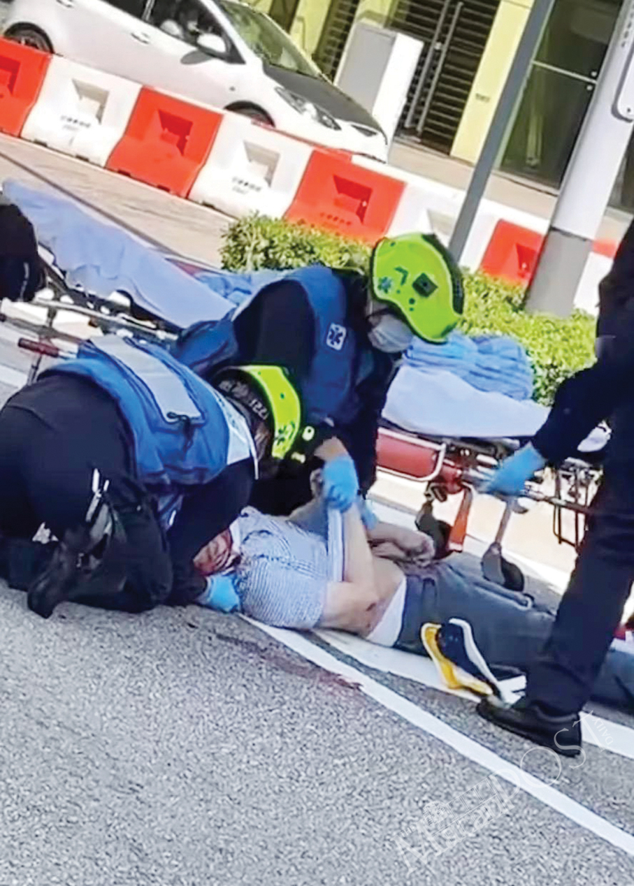 This video grab circulating online shows paramedics giving emergency treatment to the victim in Taipa on Thursday.