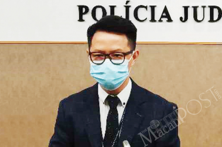 Judiciary Police (PJ) spokesman Ho Chan Nam looks on during yesterday’s regular press conference.