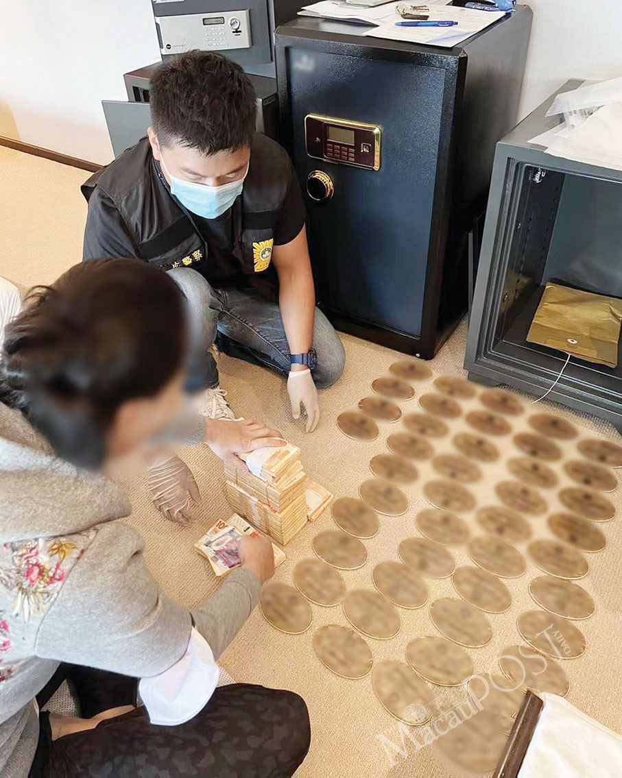 PJ officers on Wednesday arrested Kam at the shop. Singapore, Hong Kong and US dollars as well as patacas in cash worth two million patacas were seized at the shop, as well as in several vehicles and a warehouse in the northern district. Police also confiscated 84 casino chips each worth HK$1 million in Kam’s home in Taipa.