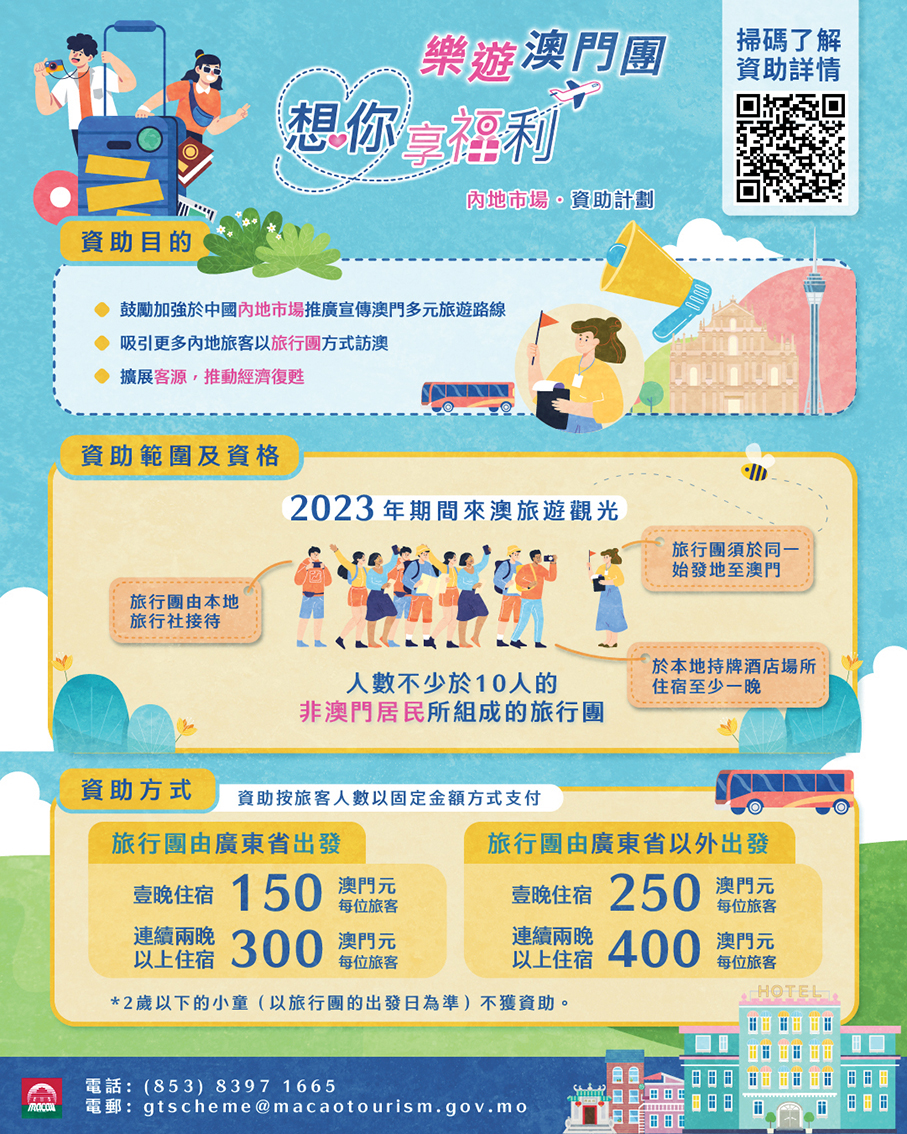 Enquiries can be made by calling 8397 1665 or by emailing gtscheme@macaotourism.gov.mo.