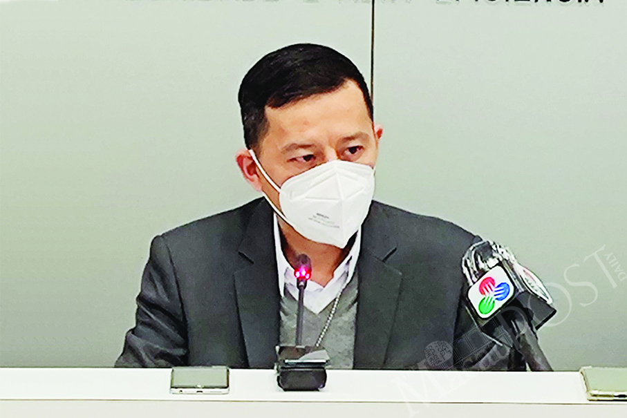 Judiciary Police (PJ) spokesman Chan Wun Man looks on during a regular press conference on Monday.