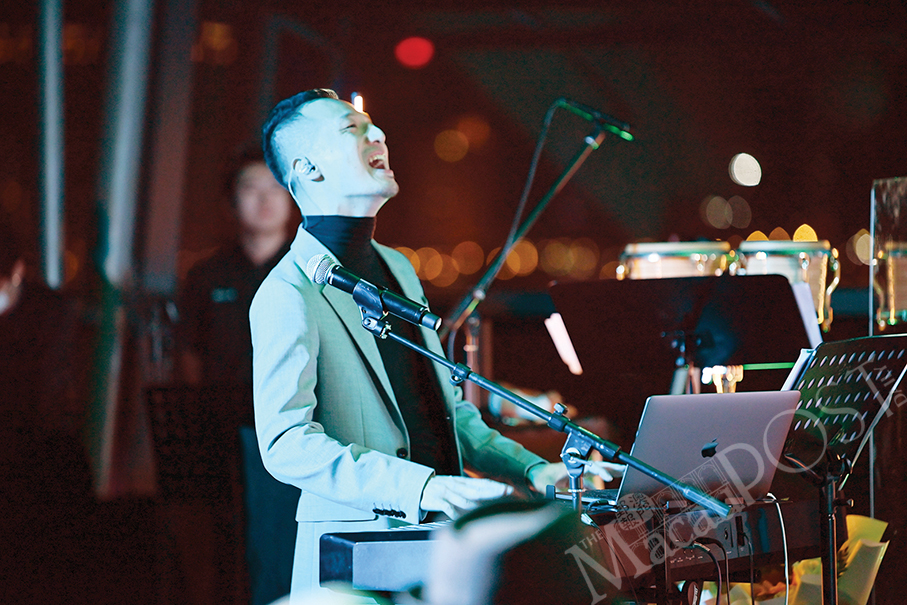 Addison Wong Kei Hong and Alex Cheng Chun Chong perform with the Macau Jazz Orchestra and Ocean Walker last Christmas at the Macau Tower Convention and Entertainment Centre. – Photos provided by the Macau Jazz Promotion Association.