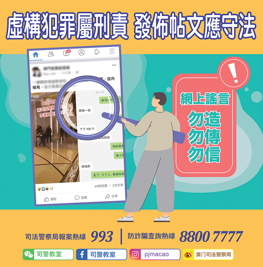 The Judiciary Police urged the public not to trust and forward unconfirmed information on the internet, otherwise, they could be sent to jail for up to one year or be fined.