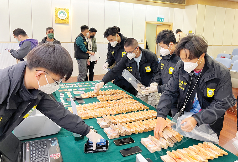 PJ officers picked up 18 people from 16 locations across Macau on Wednesday for further investigation, during which, the officers seized HK$10.7 million in cash, computers, routers, telephones, bank cards, phone cards, and other pieces of evidence.