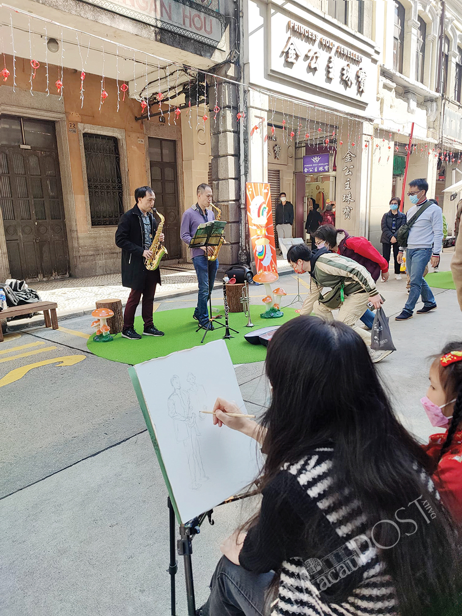 During the “Strolling through Almeida Ribeiro – Pilot Scheme for a Pedestrian Area” from January 22 to January 24, the first three days of the Chinese New Year, the government set up a number of spots in Avenida de Almeida Ribeiro (aka “San Ma Lou” in Cantonese – “New Road”) for street entertainers to perform as well.