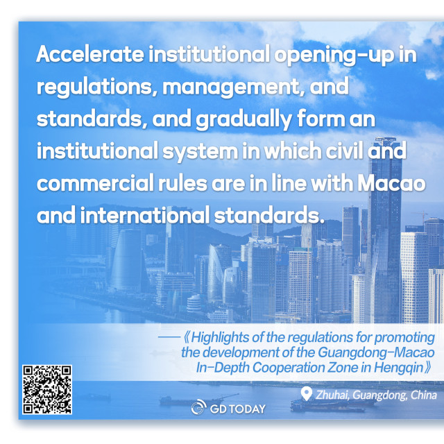 The new regulations for promoting the development of the Guangdong-Macau In-depth Cooperation Zone in Hengqin were officially released by the Standing Committee of the Guangdong Provincial People's Congress in Guangzhou today and will take effect at the beginning of next month (March 1).