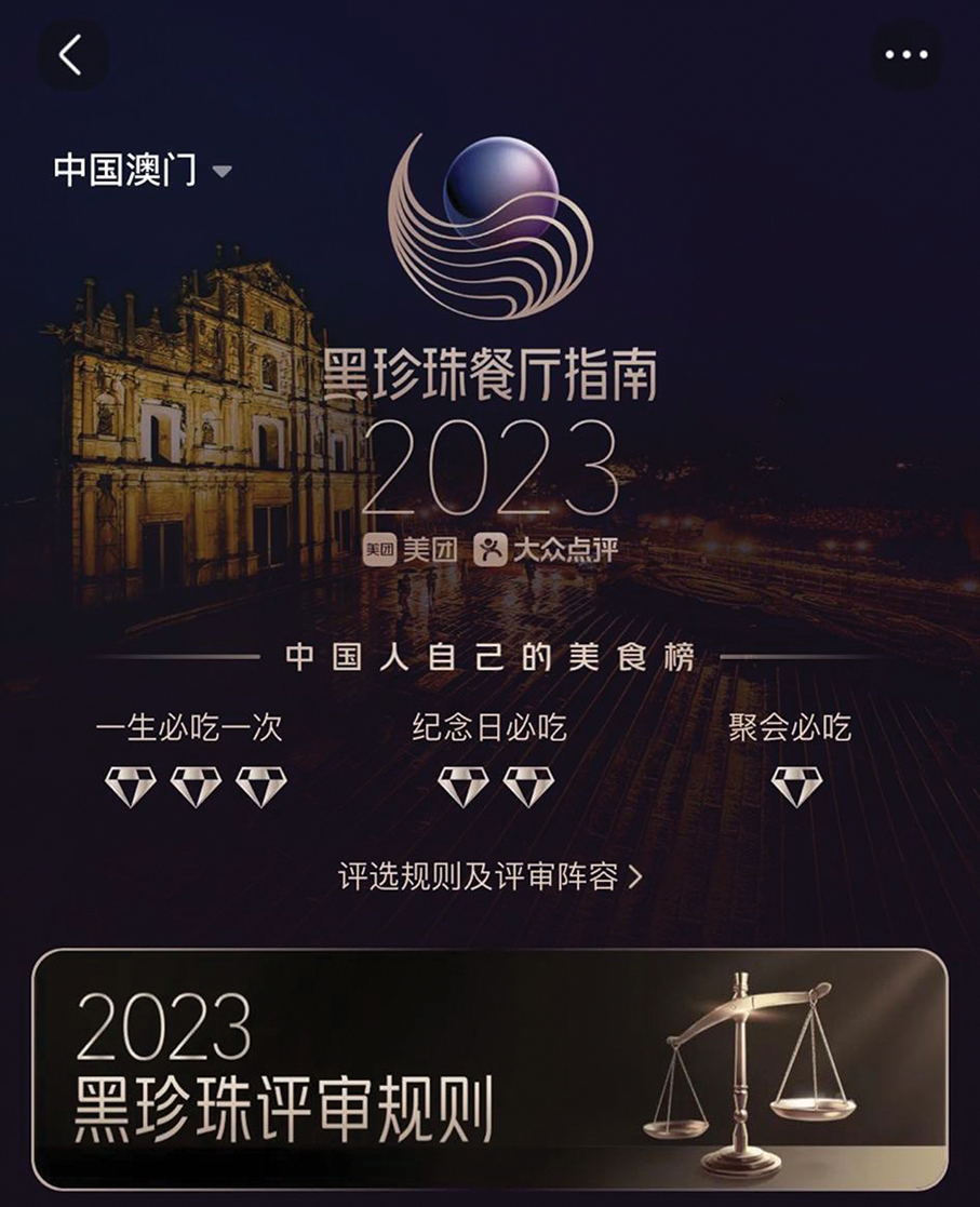 The 2023 Black Pearl Restaurant Guide by Meituan, a mainland-based e-commerce platform for dining, has awarded a raft of restaurants run by SJM Resorts, Wynn Resorts, Sands Resorts Macao, and MGM MACAU.