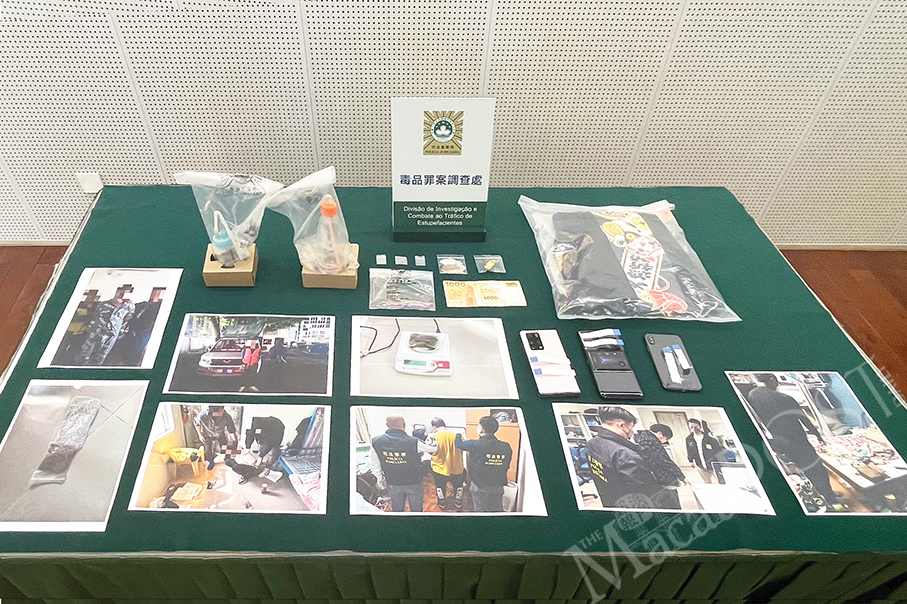 The Judiciary Police (PJ), in conjunction with their mainland counterparts, busted a cross-border gang on Wednesday which smuggled drugs from the mainland to Macau and sold them to local drug users, PJ spokesman Ho Chan Nam said during a special press conference yesterday.