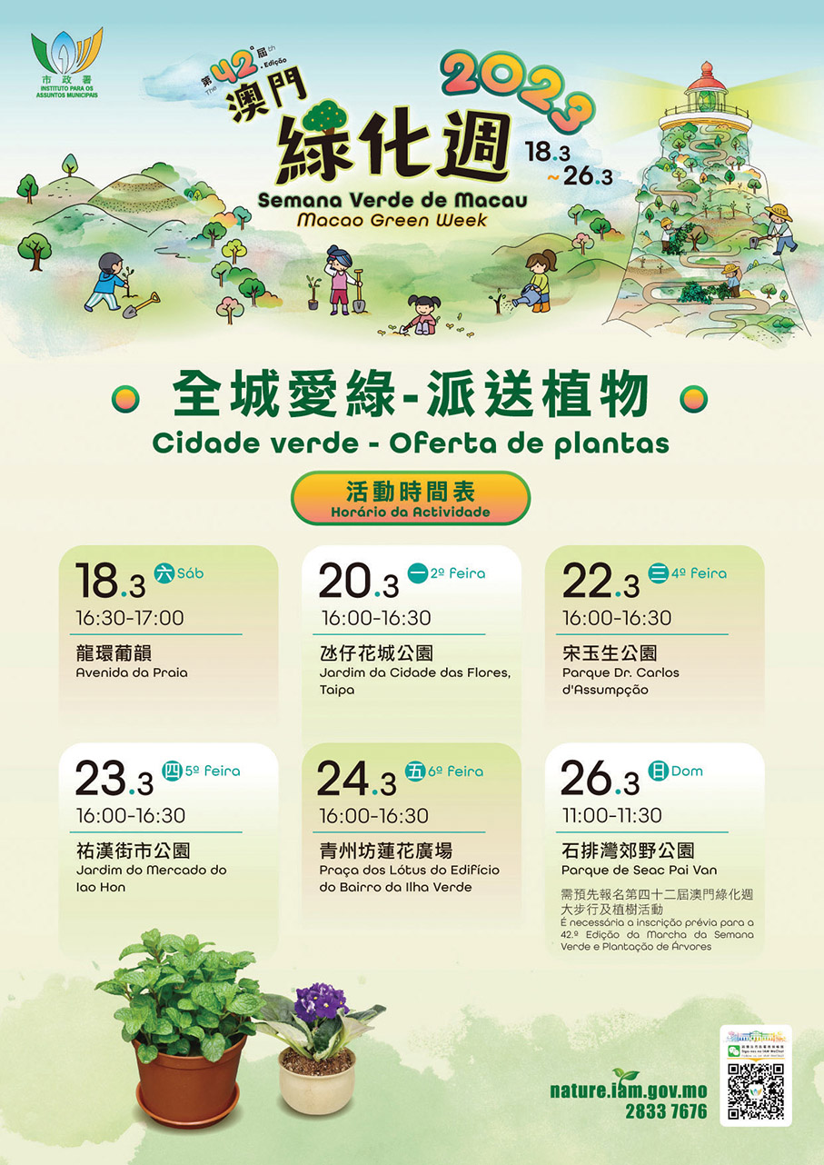 For more information, visit https://nature.iam.gov.mo/greenweek2023 and www.iam.gov.mo, or call 2833 7676 and 2888 0087 for enquiries.