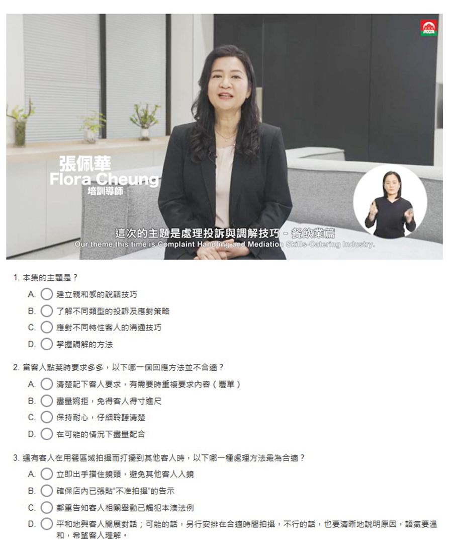 The statement said that the videos feature lectures and case analyses of different scenarios. The topics comprise Building Rapport with Conversations, Techniques to Channel Complainants’ Complaints or Emotions, Common Types of Complaints in the Catering Industry, Methods of Dealing with Different Types of Customer Complaints, Mediation Applications, Concepts and Models, as well as Mediation Interview Skills.