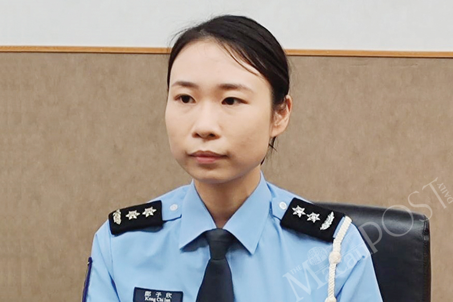 Public Security Police (PSP) spokeswoman Kong Chi Ian looks on during yesterday’s regular press conference. – Photo: William Chan