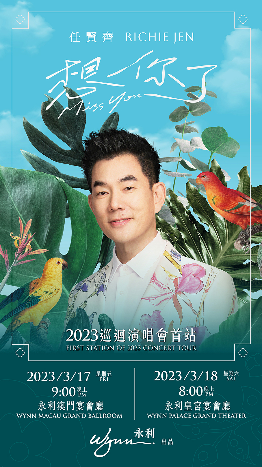 Wynn Resorts said in a recent statement that it will host prominent singer in the “Chinese music scene”, Richie Jen Hsien-chi, on the first stop of his “Miss You” 2023 Concert Tour.