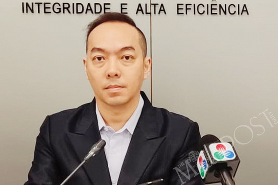 Judiciary Police (PJ) spokesman Lou Chan Fai looks on during yesterday’s regular press conference at the Public Security Police (PSP) headquarters in Zape. –Photo: William Chan