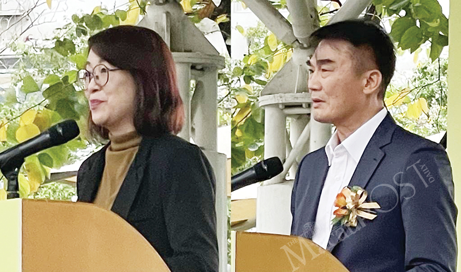 Social Welfare Bureau (IAS) acting director Hoi Va Pou (left) and Macau Correctional Services Bureau (DSC) Cheng Fong Meng deliver their respective speeches during Saturday’s event Iao Hon Market Park. – Photo combination courtesy of TDM