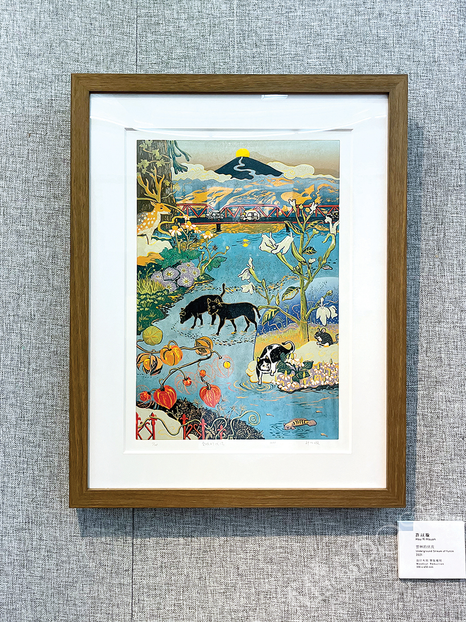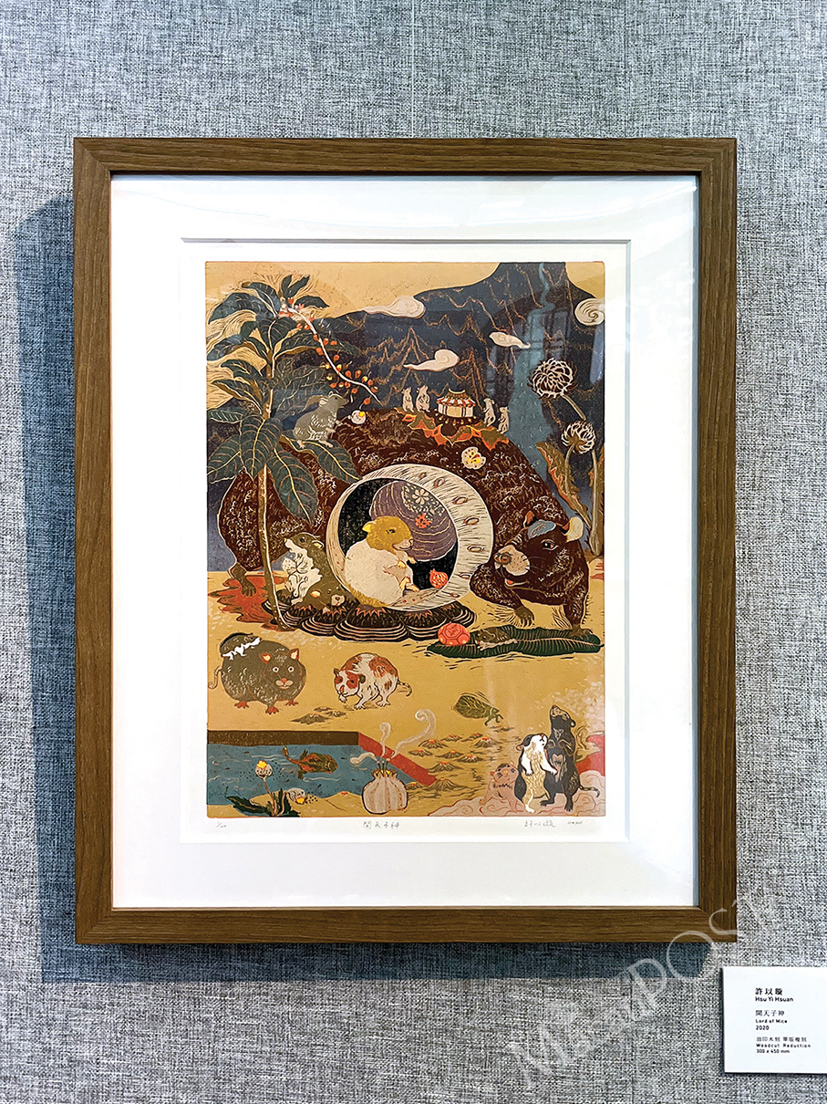 The statement noted that Taiwanese artist Hsu uses oil-based woodblock prints and a western printing press to create reduction printing, adding that her New Year painting depicts different animals living in a “carefree fantasy land” that is reminiscent of Taiwan’s countryside landscape.