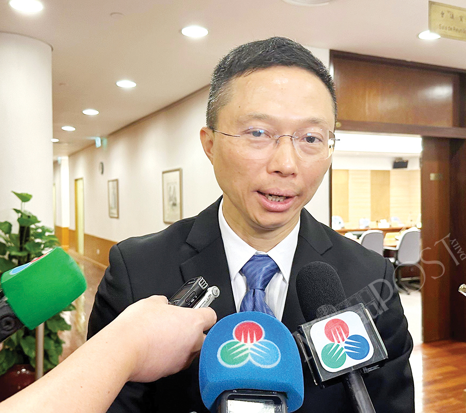 Transport Bureau (DSAT) Director Kelvin Lam Hin San talks to the media after addressing yesterday’s closed-door meeting of the legislature’s 1st Standing Committee. – Photo courtesy of TDM