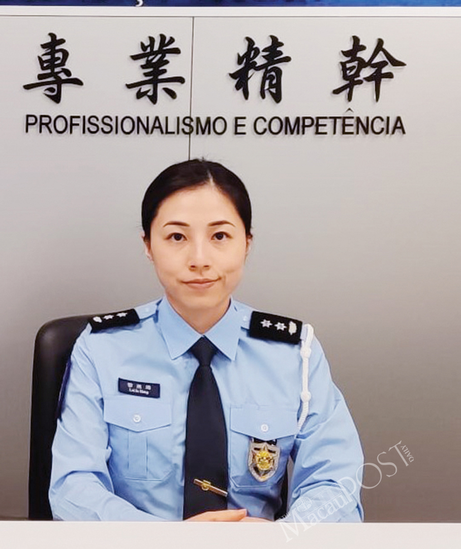 Public Security Police (PSP) spokeswoman Lai In Hong looks on during a regular press conference yesterday. – Photo: William Chan